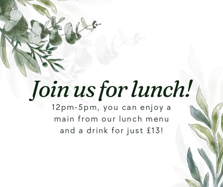 Join us for lunch 🍽️ From 12pm–5pm, you can enjoy any meal from our lunch menu along with a drink for just £13 😍 Great food, great value, and the perfect excuse to take a break and treat yourself. See you soon! 🍻